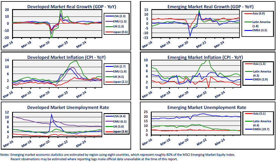 - Unemployment during the fourth quarter remained just off recent lows in most developed countries, while continuing to grind lower in emerging markets economies.
