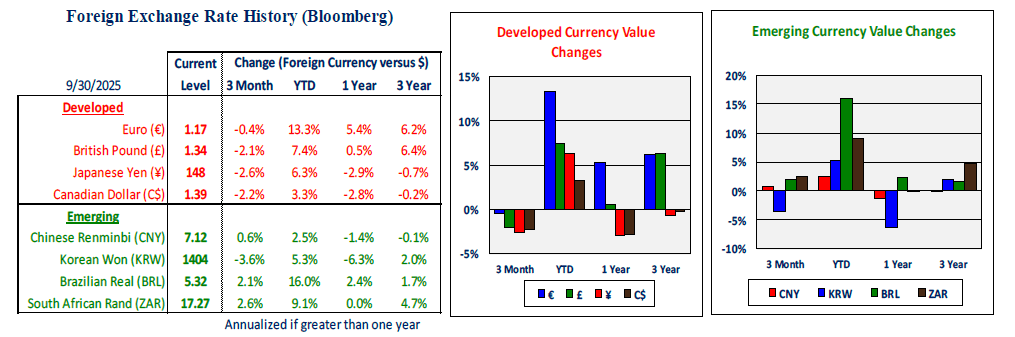 - Emerging markets extended their outperformance in 2025, as they outperformed the U.S. in each of the first three quarters with consistent contributions from both local market performance and currency exposure.